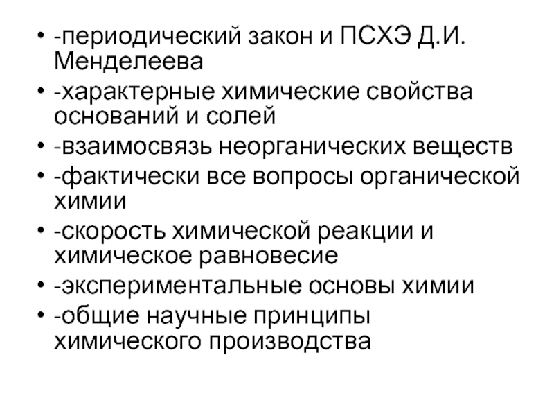 1) перечень элементов содержания, проверяемых на ЕГЭ по химии