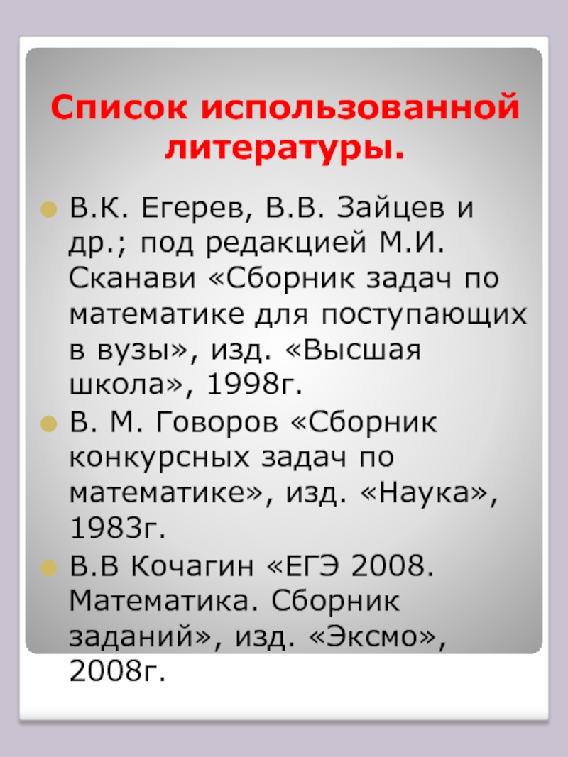 В. М. Говоров «Сборник конкурсных задач по математике», изд. «Наука», 1983г.