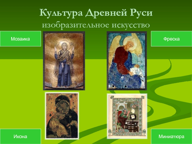Развитие культуры (письменность, иконопись, фрески, каменное зодчество, школы…)