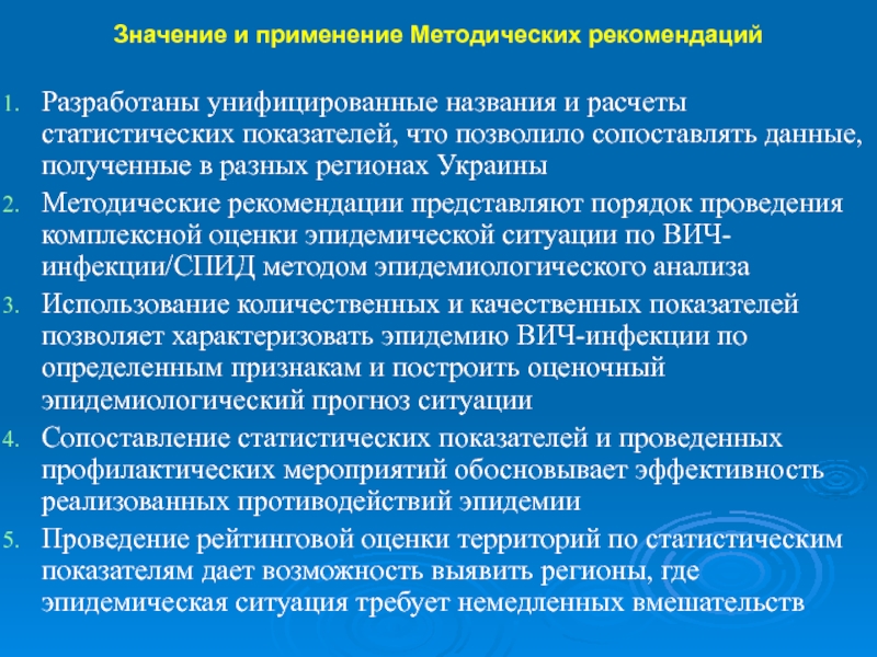 Использование количественных и качественных показателей позволяет характеризовать эпидемию ВИЧ-инфекции по определенным признакам и построить оценочный эпидемиологический прогноз ситуации