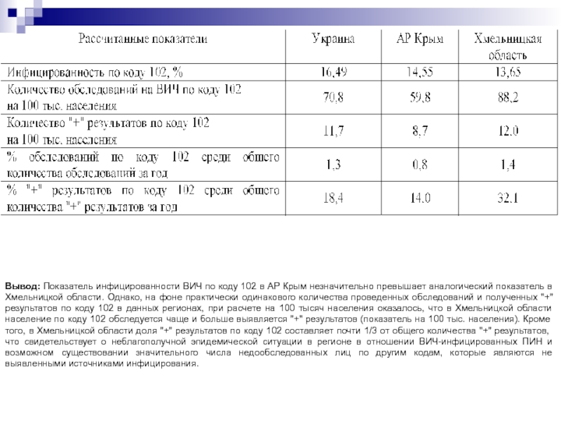 Слайд 17Вывод: Показатель инфицированности ВИЧ по коду 102 в АР Крым незначительно