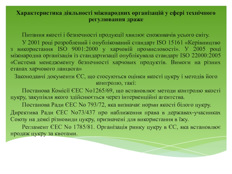 Слайд 5Характеристика діяльності міжнародних організацій у сфері технічного регулювання драже
