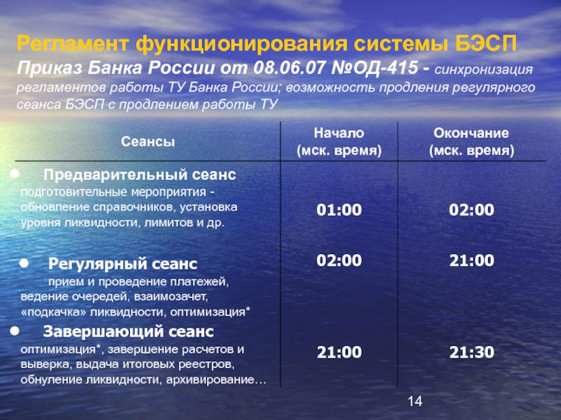 синхронизация регламентов работы ТУ Банка России; возможность продления регулярного сеанса БЭСП с продлением работы ТУ