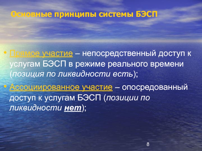 Ассоциированное участие – опосредованный доступ к услугам БЭСП (позиции по ликвидности нет);