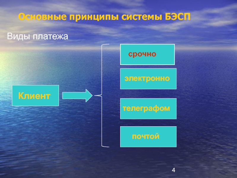 Эволюционное встраивание - БЭСП функционирует в платежной системе Банка России наряду (параллельно) с другими системами расчетов («срочные» в дополнение к «электронным», «почтовым» и «телеграфным»);