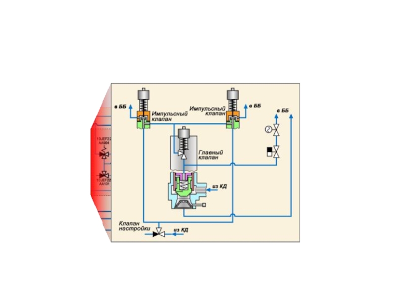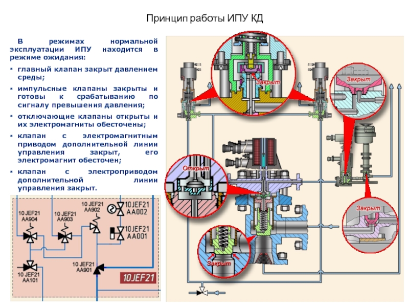 При снижении давления в первом контуре до давления настройки пружин, импульсный клапан закрывается и приводит к закрытию главный.