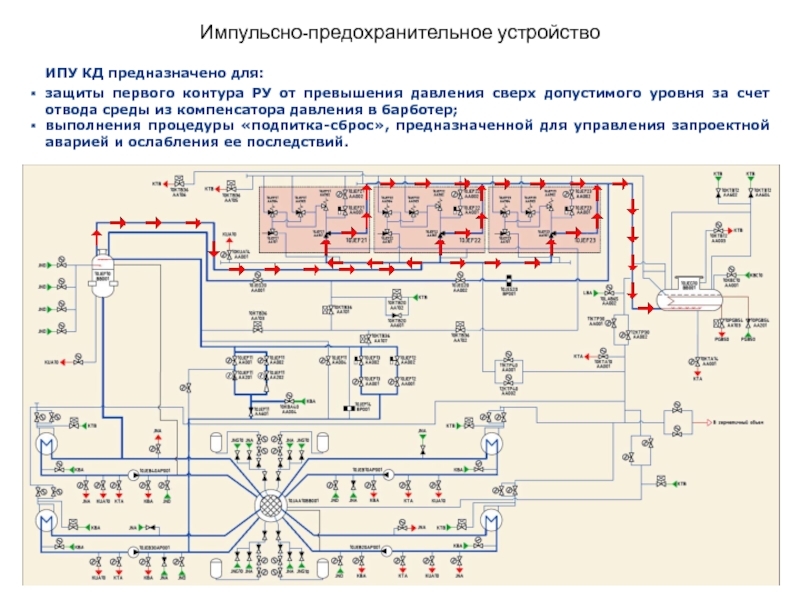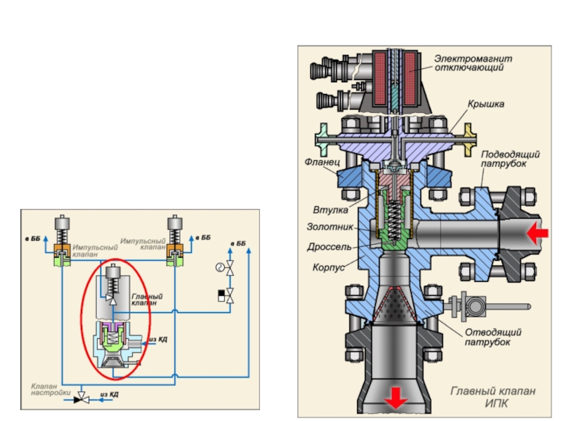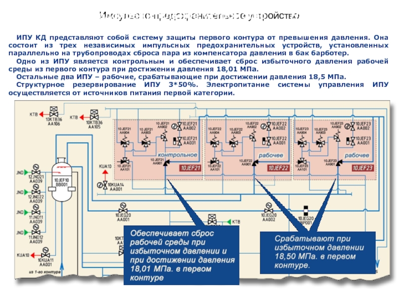 При падении давления в первом контуре до уставки закрытия импульсного клапана от электро-магнита, открывающая обмотка электромагнита обесточивается, и ток подается на обмотку закрытия в форсирующем режиме.
