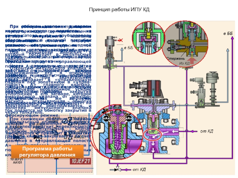 При превышении давления первого контура до срабатывания уставки импульсного клапана, закрывающая обмотка электро-магнита обесточивается и ток подается на открывающую обмотку.