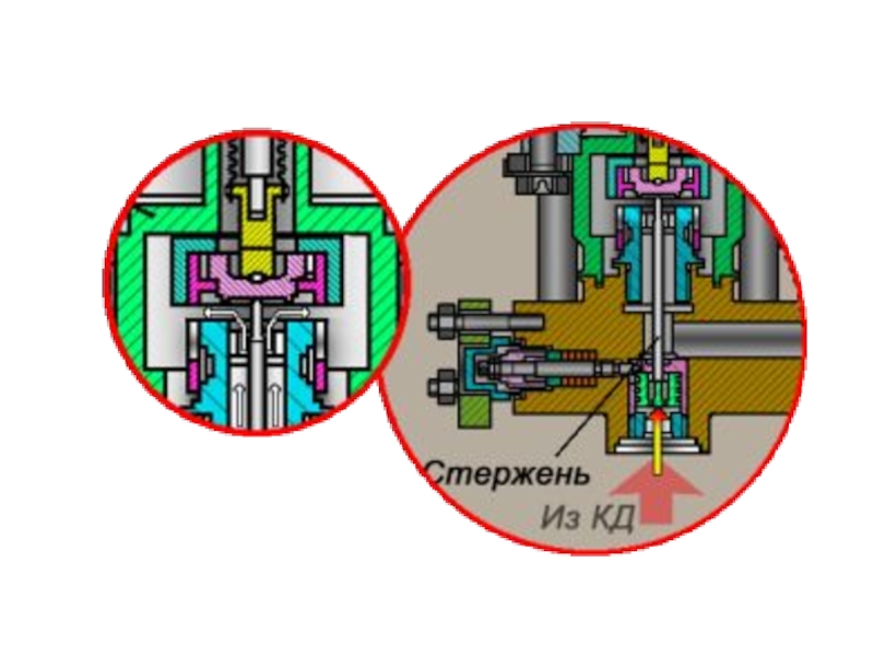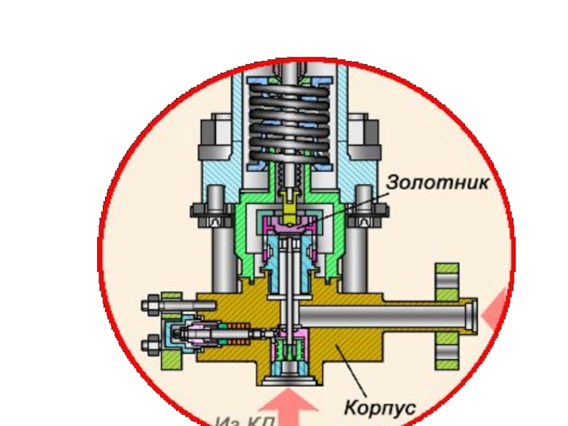 При повышении давления в первом контуре рабочая среда приподнимает золотник.