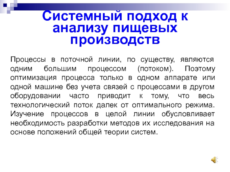 Слайд 3Системный подход к анализу пищевых производств