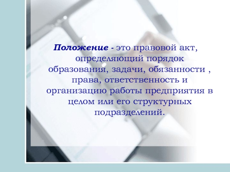 Слайд 6Положение - это правовой акт, определяющий порядок образования, задачи, обязанности ,
