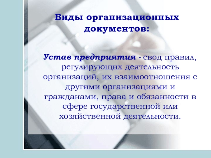 деятельность организаций, их взаимоотношения с другими организациями и гражданами, права и обязанности в сфере государственной или хозяйственной деятельности.