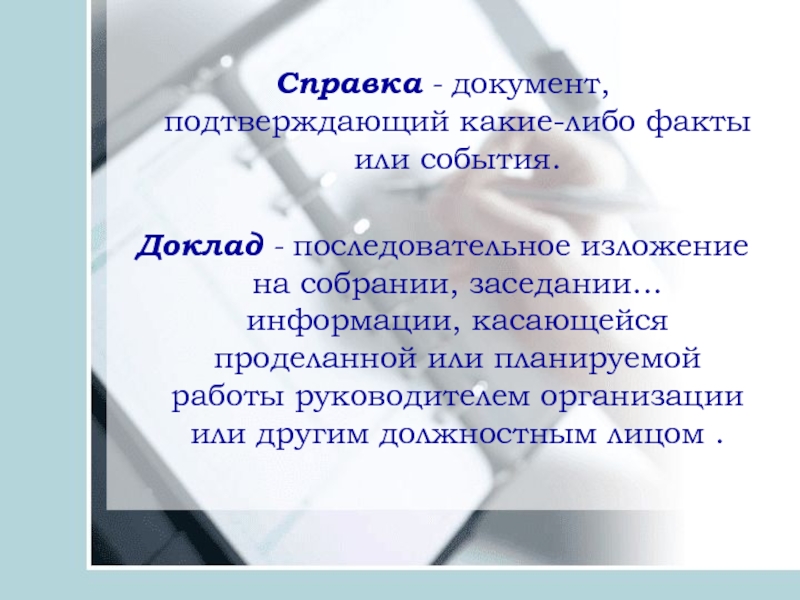 Слайд 21Справка - документ, подтверждающий какие-либо факты или события.