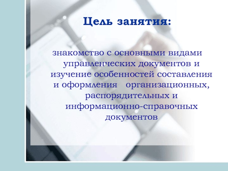знакомство с основными видами управленческих документов и изучение особенностей составления