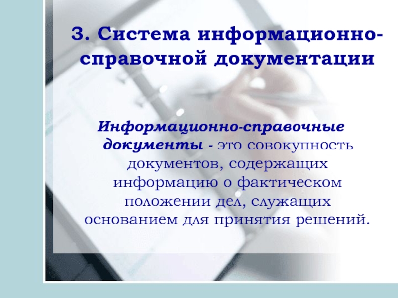 информацию о фактическом положении дел, служащих основанием для принятия решений.
