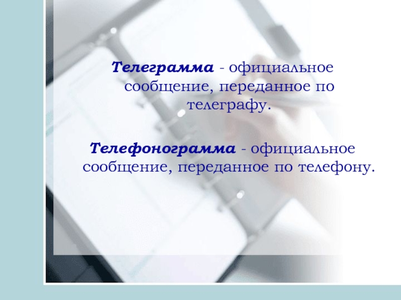 Слайд 22Телеграмма - официальное сообщение, переданное по телеграфу.