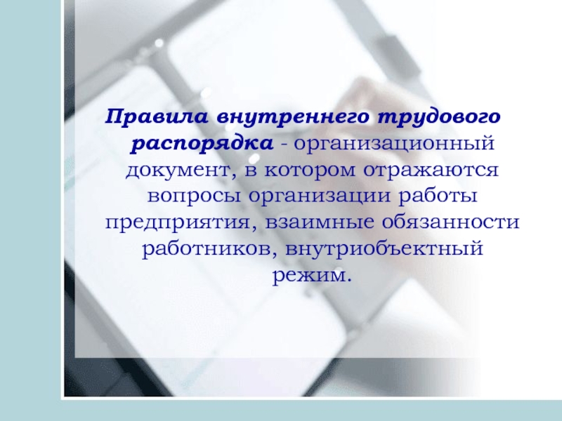 Слайд 11Правила внутреннего трудового распорядка - организационный документ, в котором отражаются вопросы