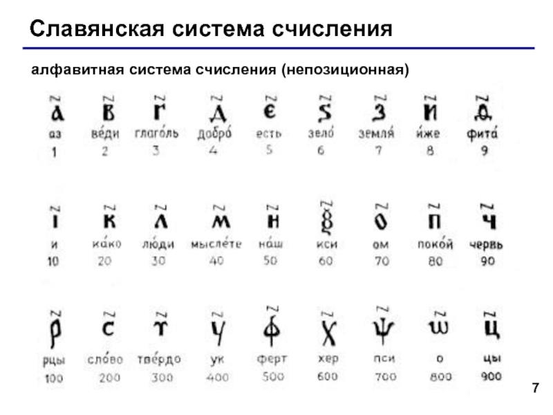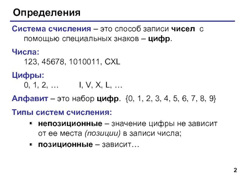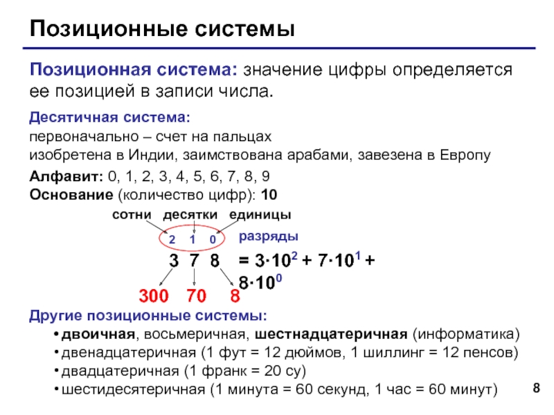 Позиционная система: значение цифры определяется ее позицией в записи числа.