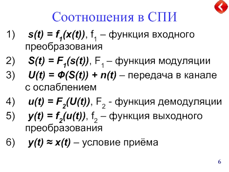 U(t) = Ф(S(t)) + n(t) – передача в канале с ослаблением