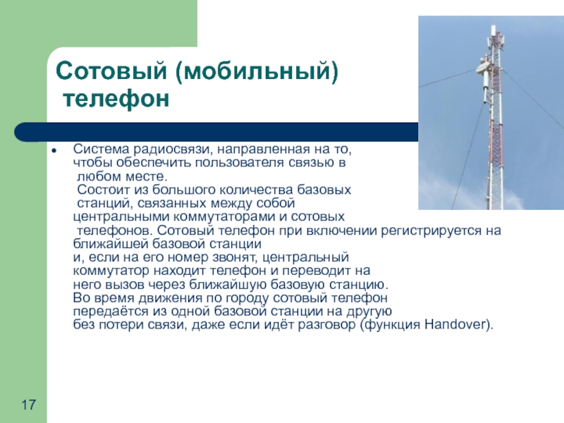 телефонов. Сотовый телефон при включении регистрируется на ближайшей базовой станции