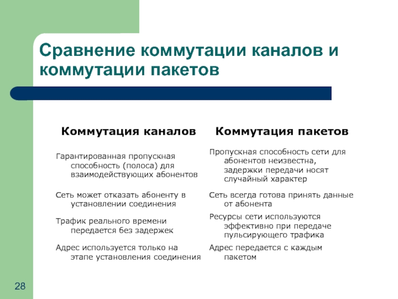 Коммутаторы пакетной сети отличаются от коммутаторов каналов тем, что они
