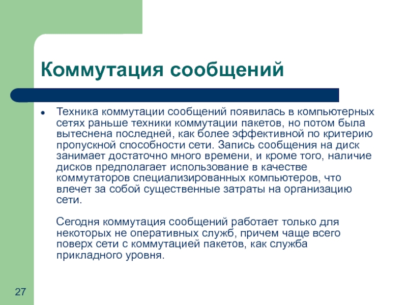 Коммутация сообщений по своим принципам близка к коммутации пакетов.