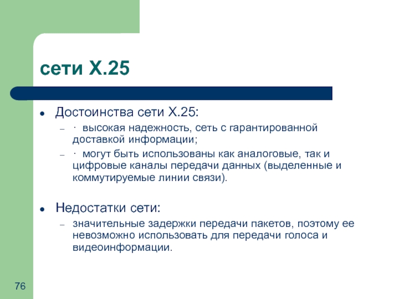 Сети Х.25 являются первой сетью с коммутацией пакетов и