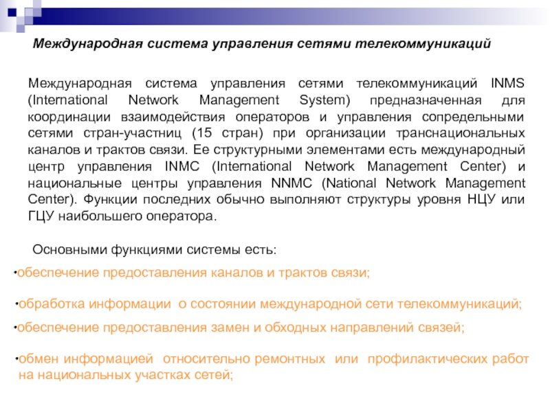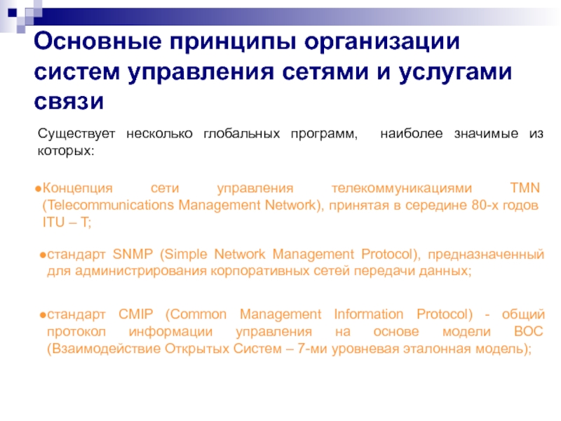 Концепция сети управления телекоммуникациями TMN (Telecommunications Management Network), принятая в середине 80-х годов ITU – T;