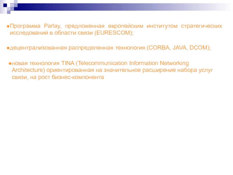 новая технология TINA (Telecommunication Information Networking Architecture) ориентированная на значительное расширение набора услуг связи, на рост бизнес-компонента