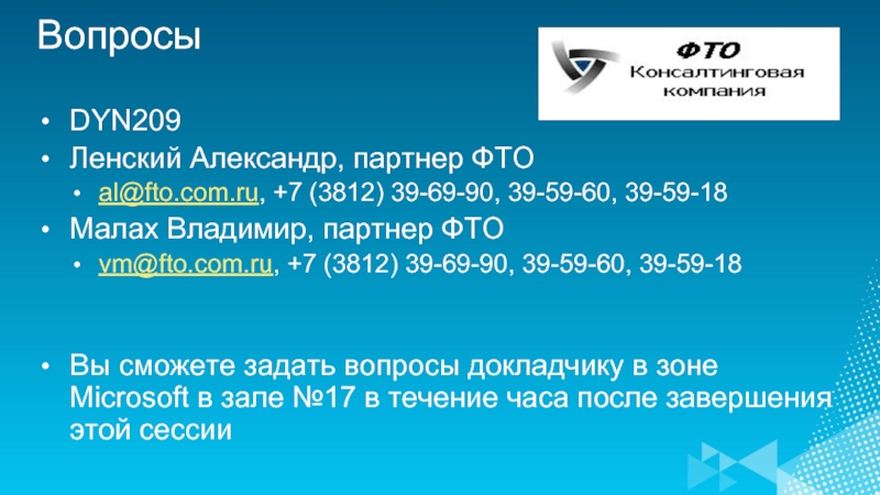 16:30 Построение, развертывание и масштабирование информационных решений копоративного масштаба. 60 советов за 60 минут от ведущих ERP- и CRM-консультантов Консалтинга Microsoft