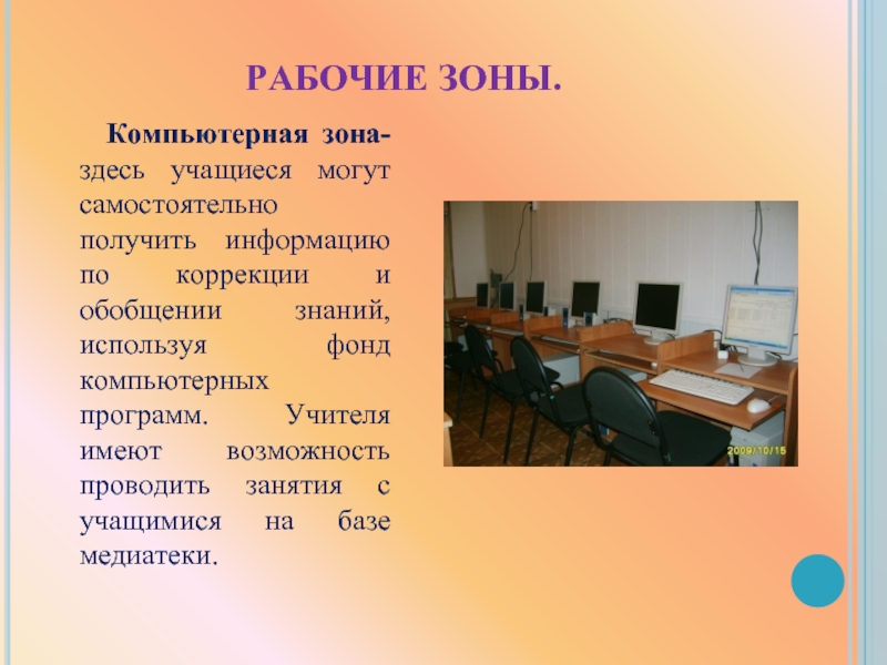 Компьютерная зона- здесь учащиеся могут самостоятельно получить информацию по коррекции