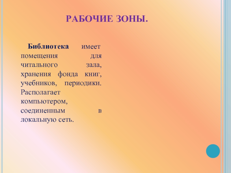 Слайд 6РАБОЧИЕ ЗОНЫ.