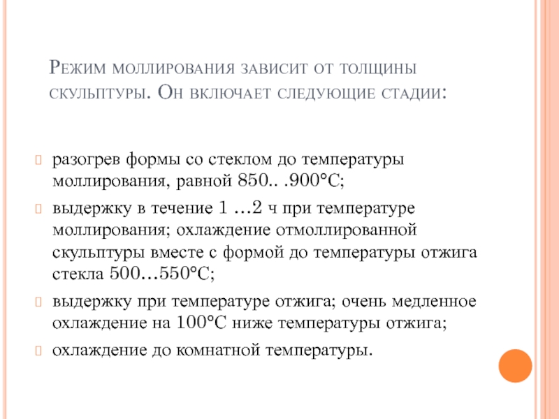 Слайд 22Режим моллирования зависит от толщины скульптуры. Он включает следующие стадии: