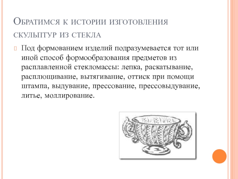 Слайд 11Обратимся к истории изготовления скульптур из стекла