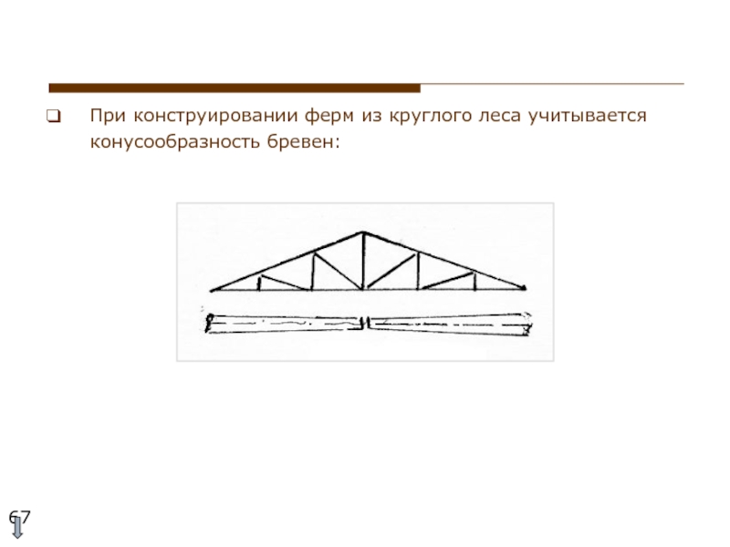 Слайд 67При конструировании ферм из круглого леса учитывается конусообразность бревен: