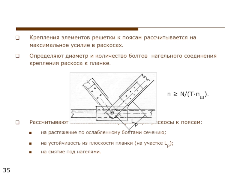 Слайд 24Конструирование фермы начинают с подбора сечения раскосов: