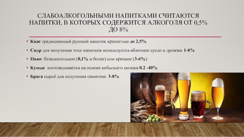 Пиво безалкогольное (0,1% и более) или крепкое (3-6%)
