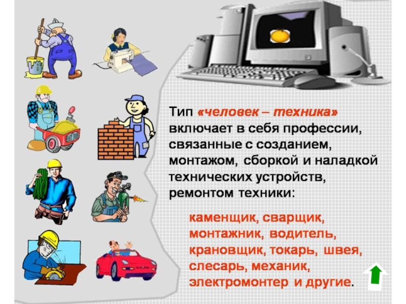 Движение в слайде №9 осуществляется кликом по названию типа для перехода по гиперссылке к соответствующему типовому слайду. На каждом из слайдов с 10-го по 14-тый стоит гиперссылка к сл.9.