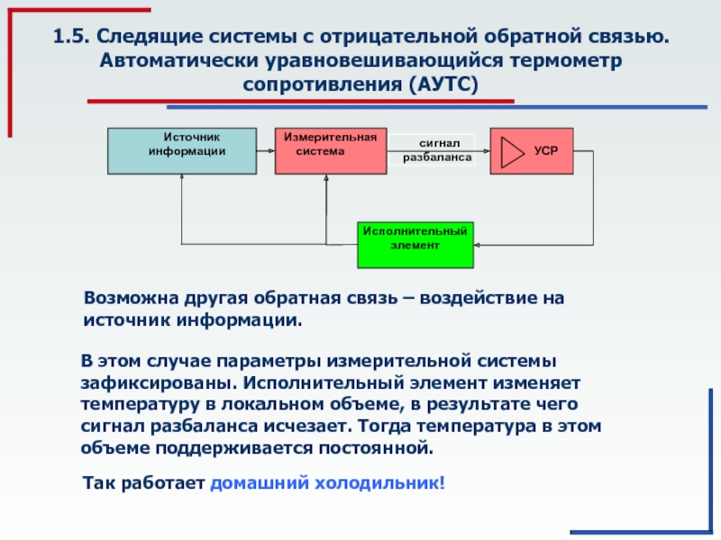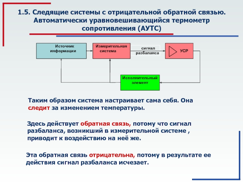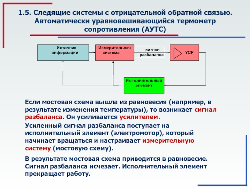 Эта обратная связь отрицательна, потому в результате ее действия сигнал разбаланса исчезает.