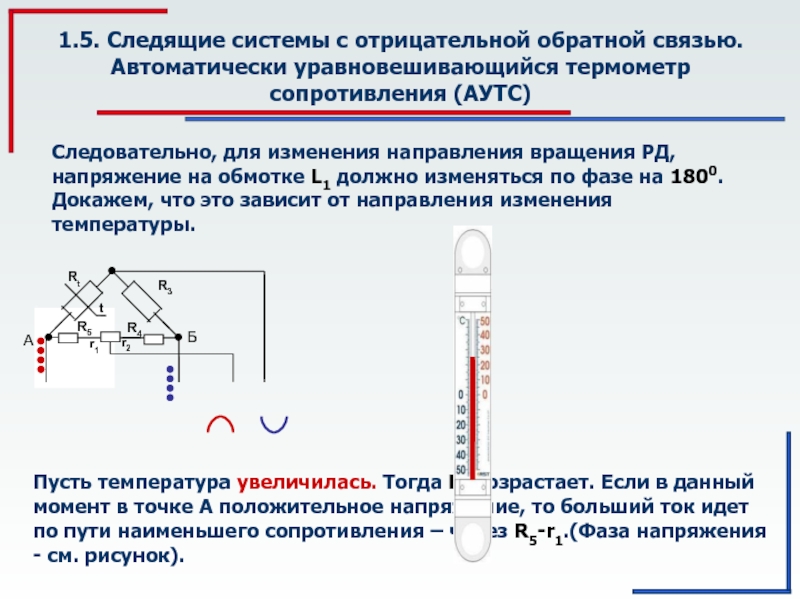 Следовательно, для изменения направления вращения РД, напряжение на обмотке L1 должно изменяться по фазе на 1800. Докажем, что это зависит от направления изменения температуры.