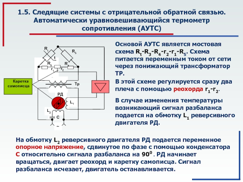 В случае изменения температуры возникающий сигнал разбаланса подается на обмотку L1 реверсивного двигателя РД.
