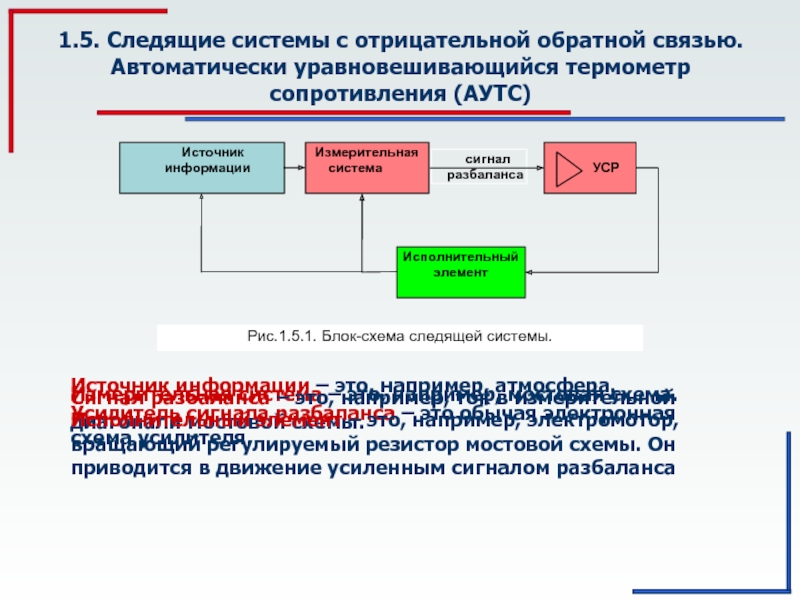 Автоматические следящие системы – это системы, способные к самонастройке. Это достигается наличием отрицательной обратной связи в системе.