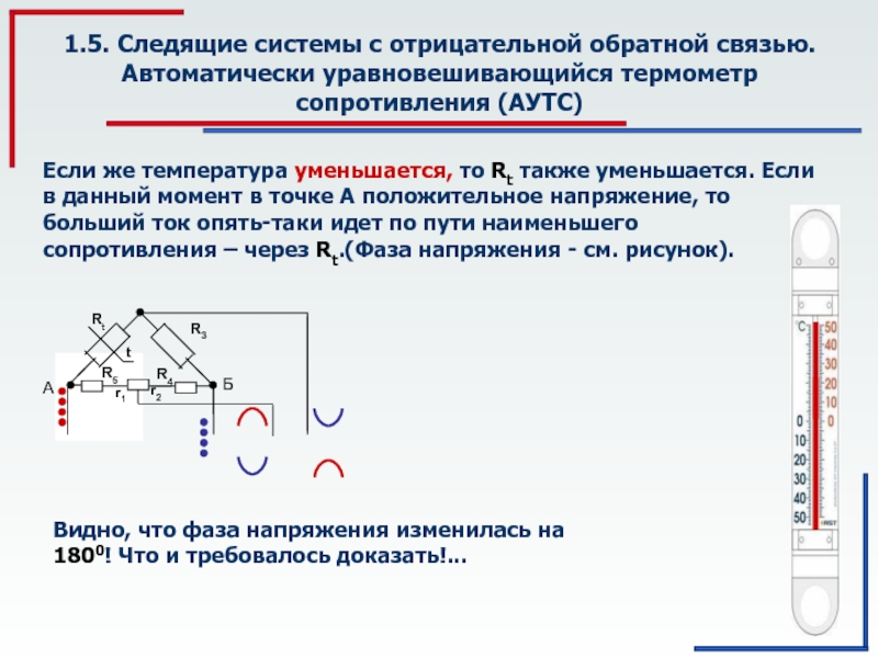 Если же температура уменьшается, то Rt также уменьшается. Если в данный момент в точке А положительное напряжение, то больший ток опять-таки идет по пути наименьшего сопротивления – через Rt.(Фаза напряжения - см. рисунок).