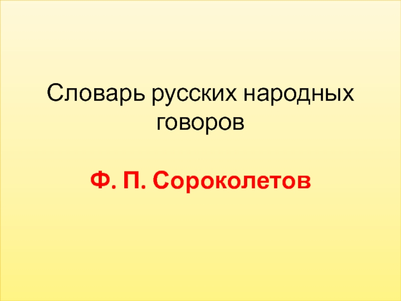 Слайд 19Словарь русских народных говоров Ф. П. Сороколетов
