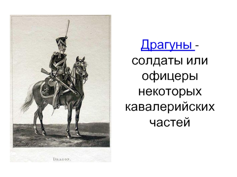 Слайд 8Драгуны - солдаты или офицеры некоторых кавалерийских частей