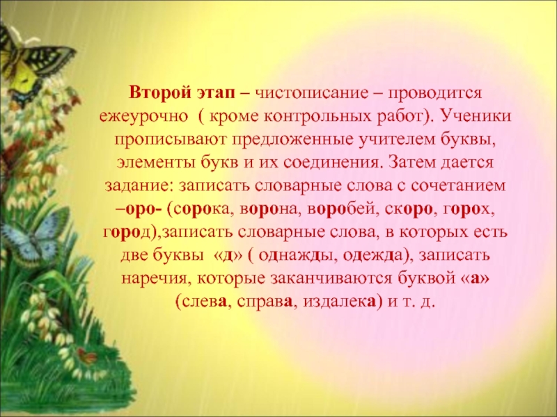 Слайд 9Второй этап – чистописание – проводится ежеурочно ( кроме контрольных работ).