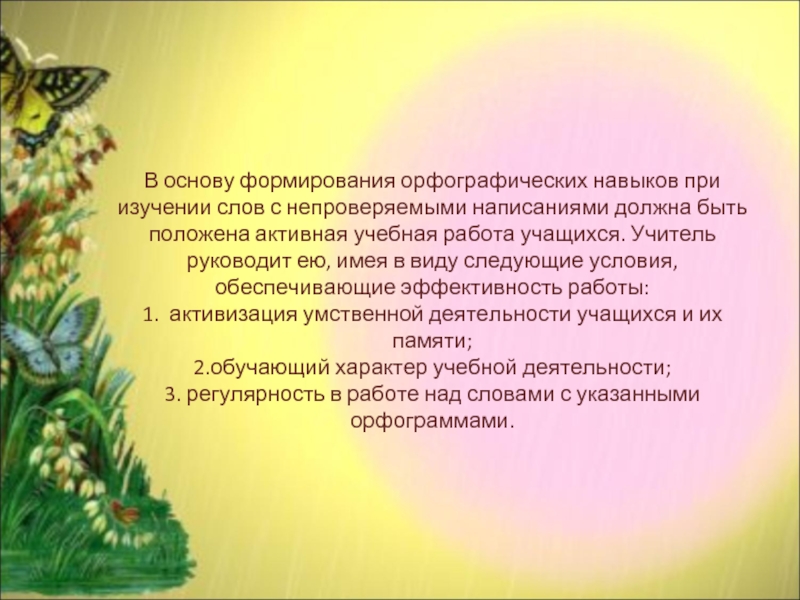 Слайд 4В основу формирования орфографических навыков при изучении слов с непроверяемыми написаниями