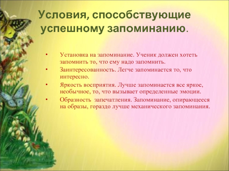Установка на запоминание. Ученик должен хотеть запомнить то,