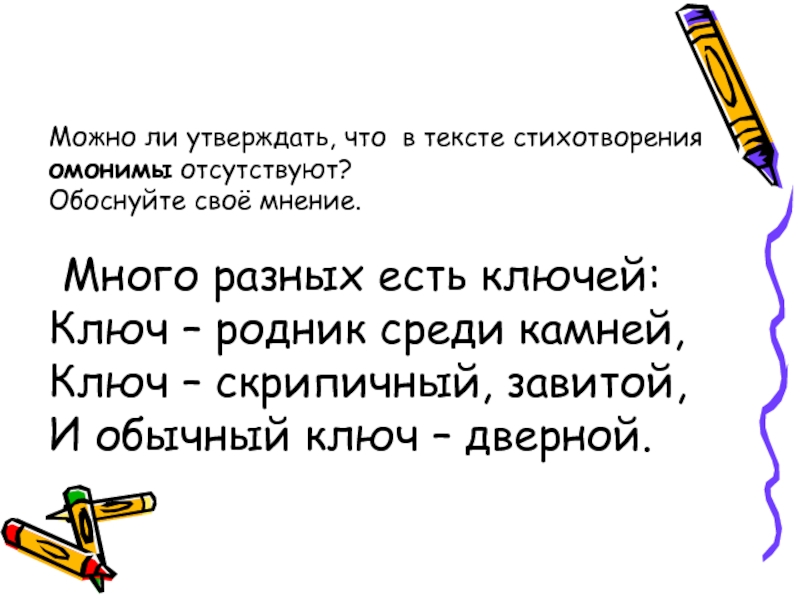 Прочитайте текст стихотворения и назовите слово, которое одинаково произносится и пишется, но имеет разное значение.