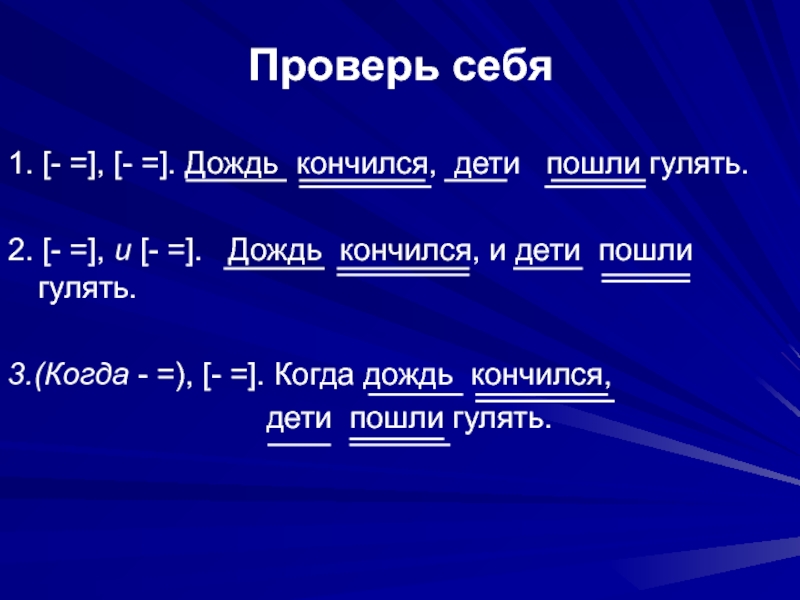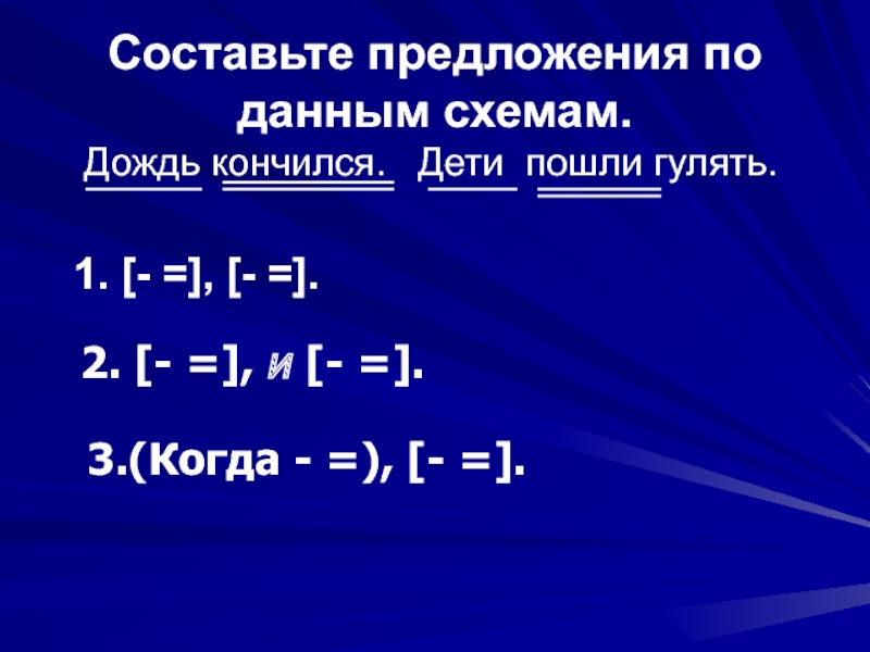 2. [- =], и [- =]. Дождь кончился, и дети пошли гулять.